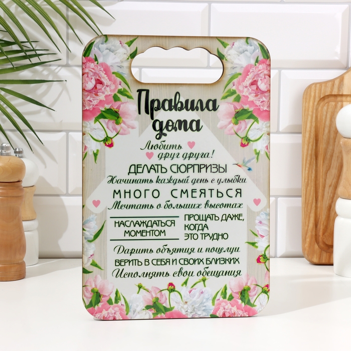 Доска разделочная "Правила дома, любви и уюта", дерево, 18х27 см