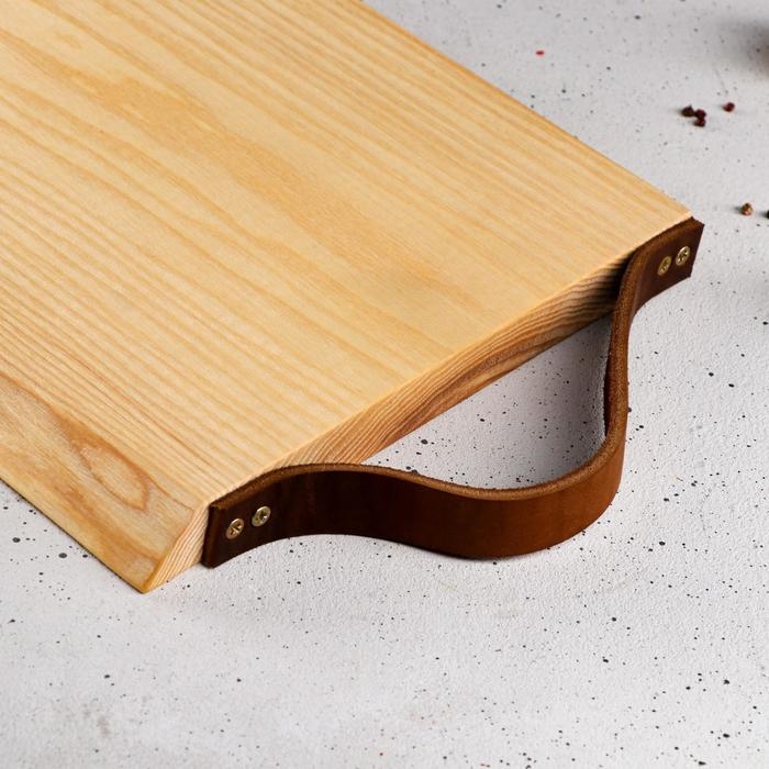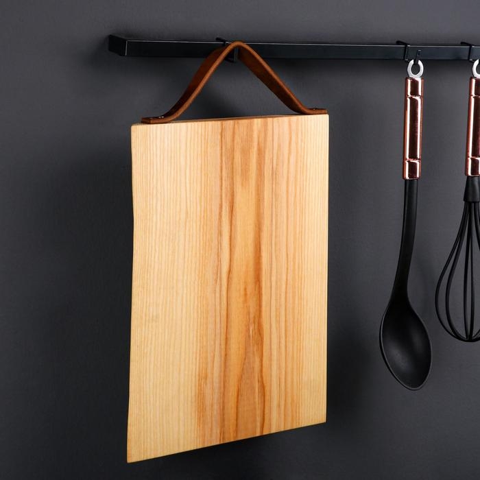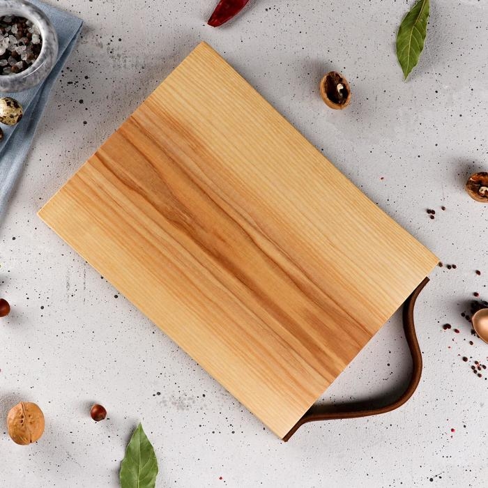 Доска разделочная "Прямоугольная", кожаная ручка, массив ясеня, 32х24 см