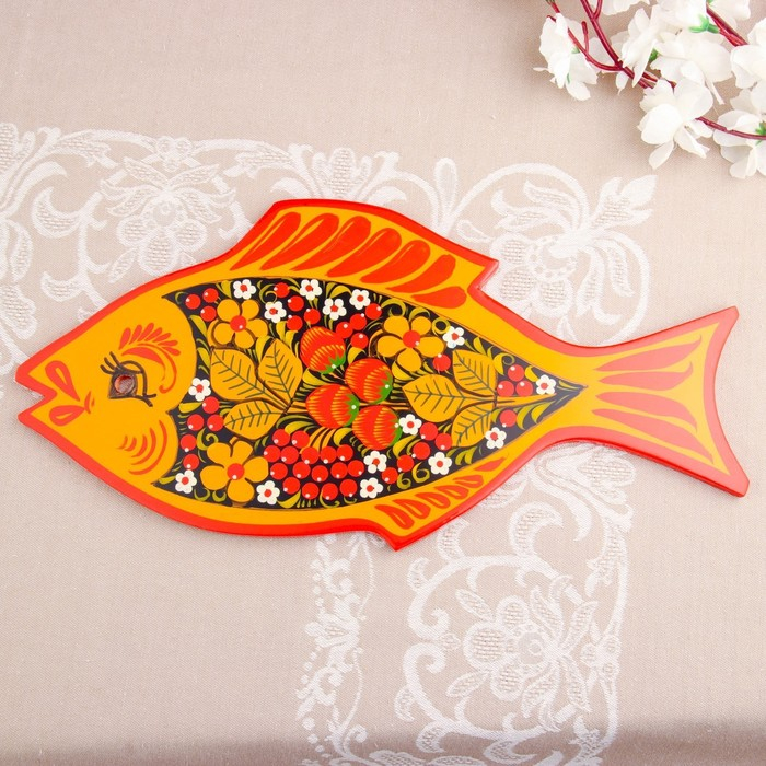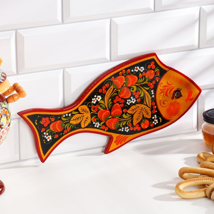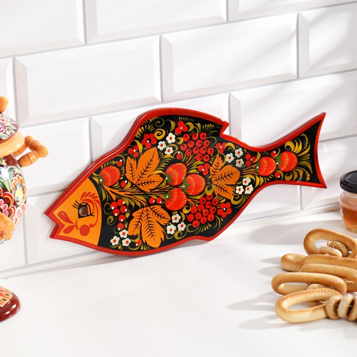 Доска разделочная «Рыбка», 36×18 см, хохлома