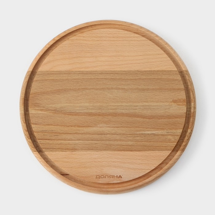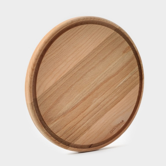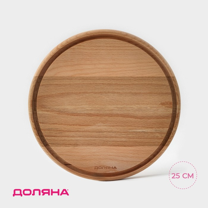 Доскa рaзделочнaя с кровостоком Премиум «Круглaя», d=25 см, бук