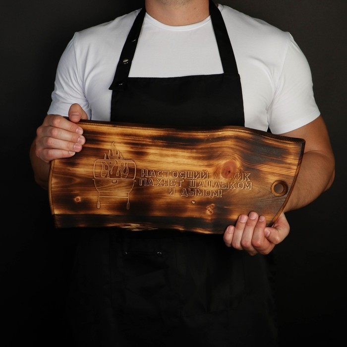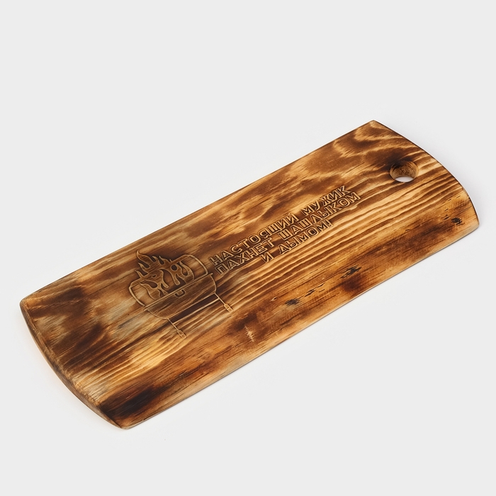 Доска разделочная в обжиге Wild Kitchen «Настоящий мужик пахнет шашлыком и дымом», 49,5×25×2 см, цельный массив кедра
