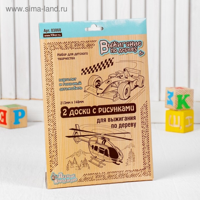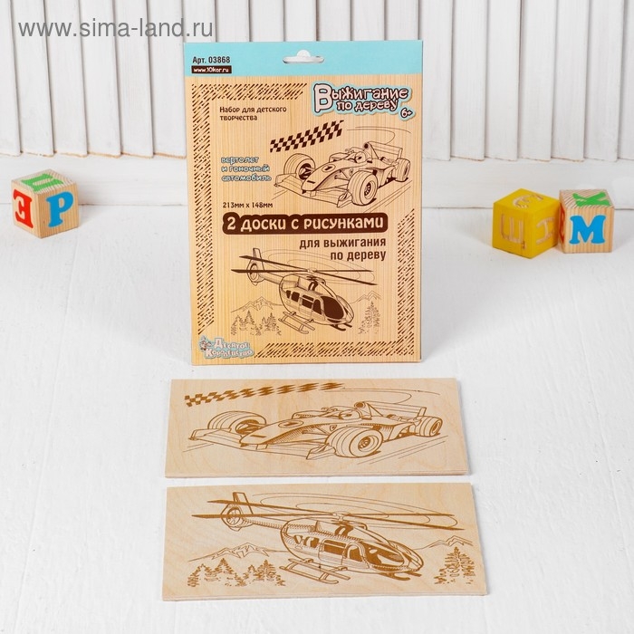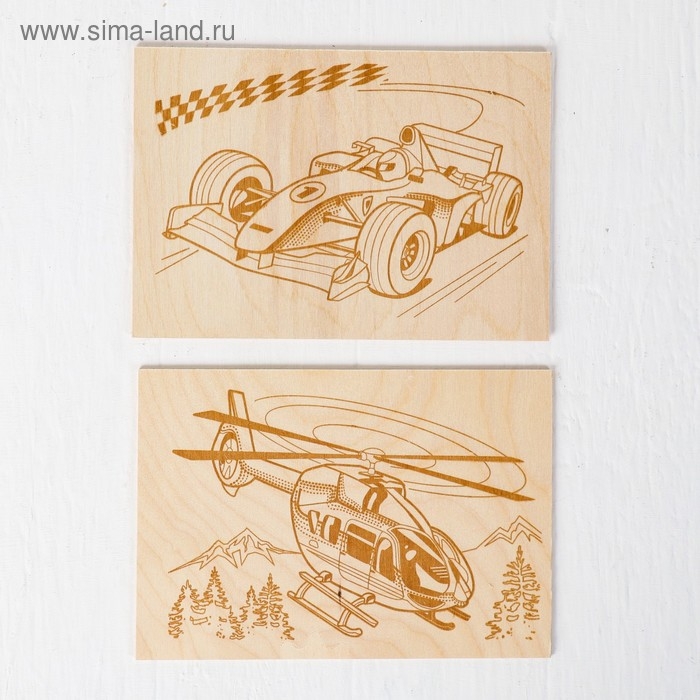 Доски для выжигания 2 шт. «Вертолёт и гоночный автомобиль» блистер
