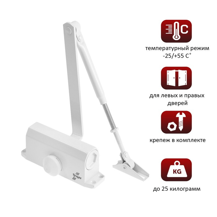Доводчик дверной ТУНДРА TD D25WW, до 25 кг, белый