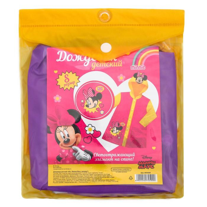 Дождевик детский, размер S, 92-98 см, Минни Маус