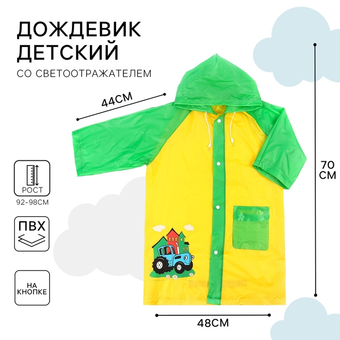 Дождевик детский, размер S, 92-98 см, Синий трактор