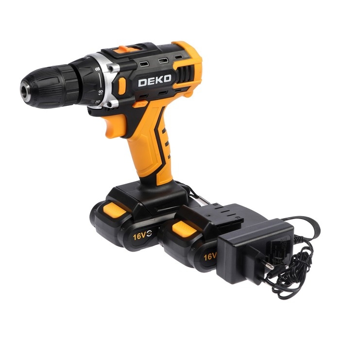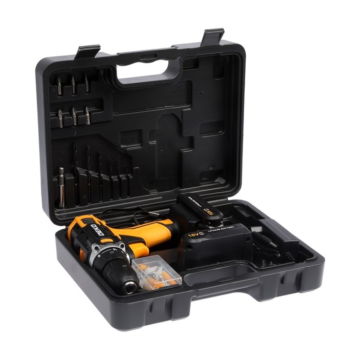 Дрель аккумуляторная и набор инструментов Deko DKCD16FU-Li, 63 предмета, 16 В, 2 АКБ