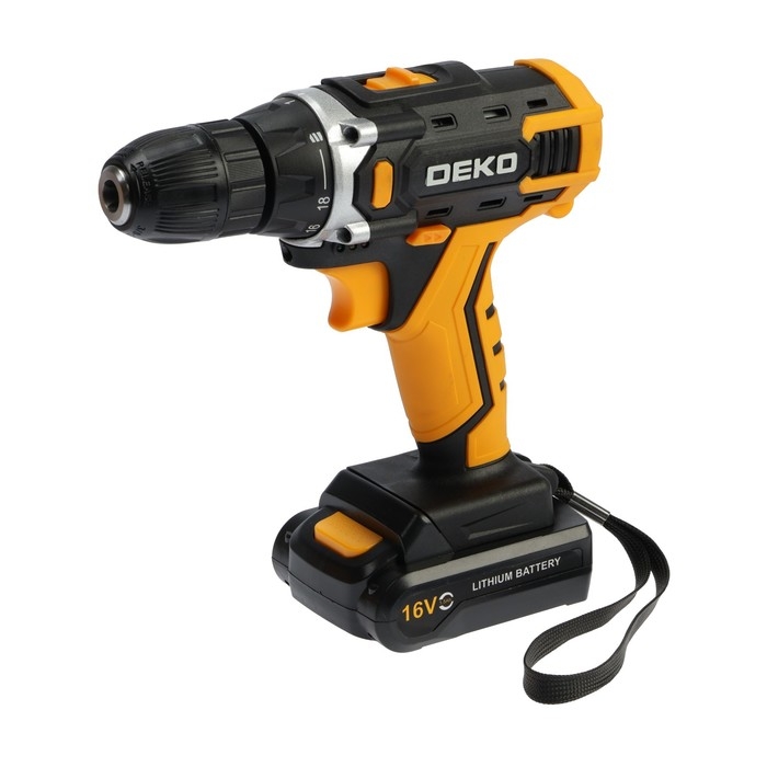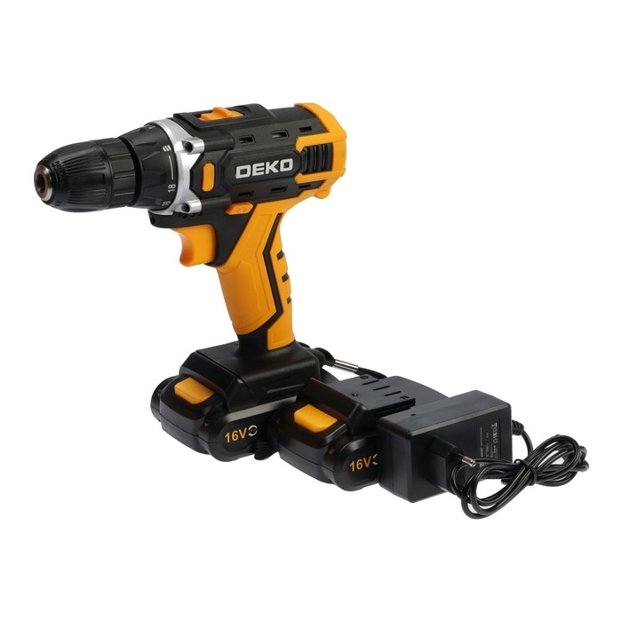 Дрель-шуруповерт DEKO Banger 16V, 16 В, 2х1.5 Ач, кейс + набор инструментов 63 предмета