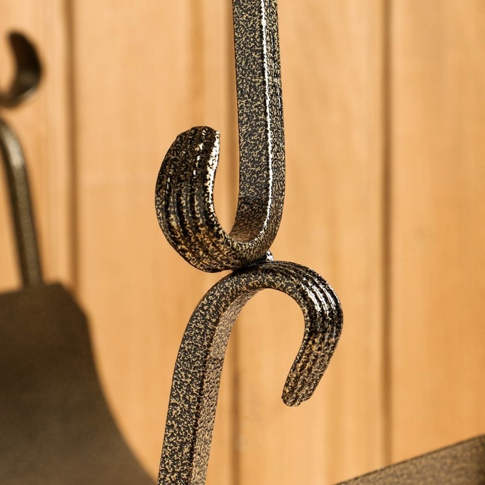 Каминный набор КН-6-4 кованый с дровницей, цвет бронза, 3 предмета: кочерга, совок, метёлка