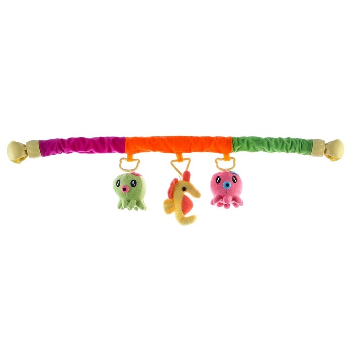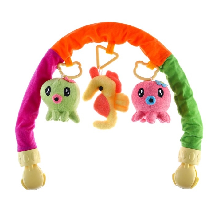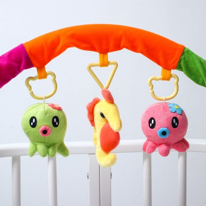 Дуга игровая мягкая на кроватку, коляску «Осьминожки», 25-84 см, погремушки, 3 игрушки МИКС, Крошка Я