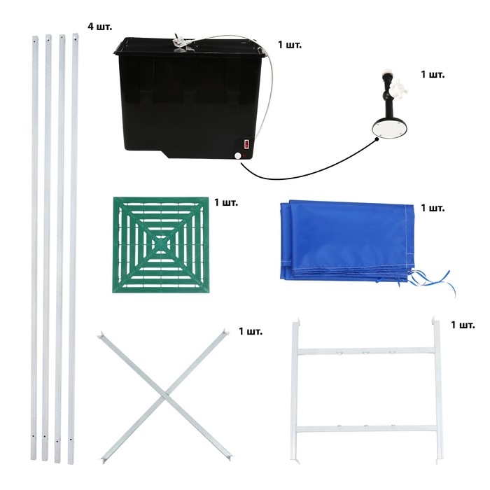 Душ дачный, 80 × 80 × 250 см, тент, бак пластиковый, 55 л, с ЭВН