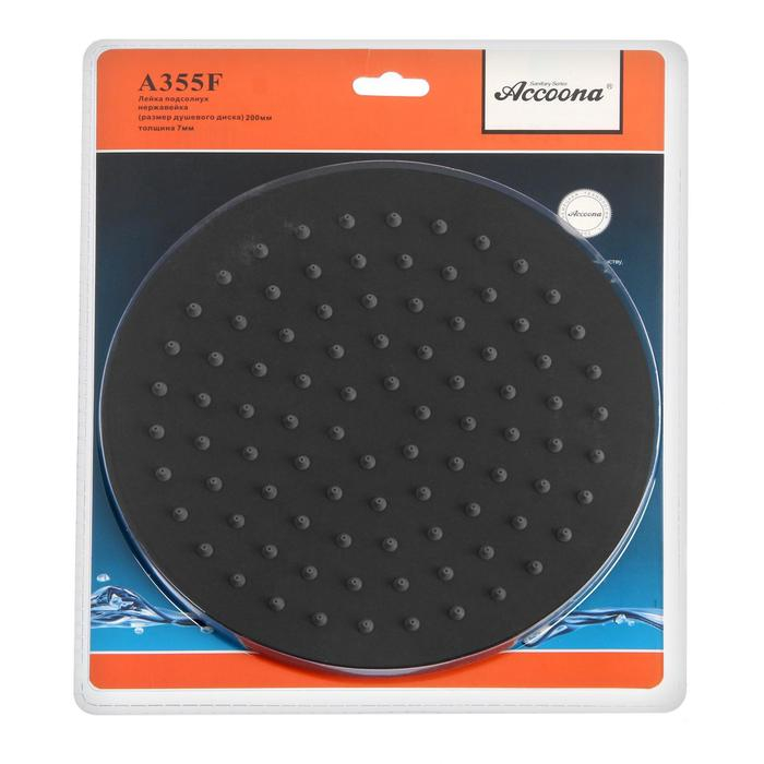 Душевая лейка Accoona А355F, тропическая, d=20 см, круг, нерж. сталь, черная