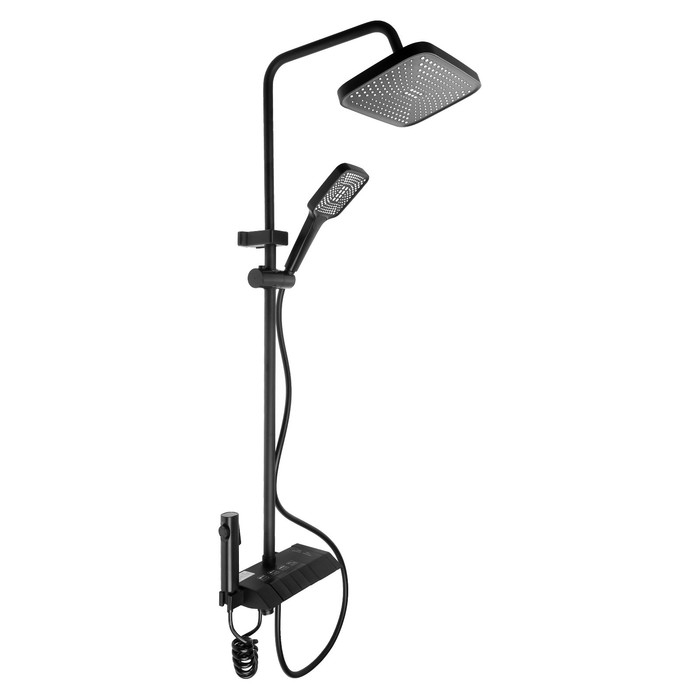 Душевая система ZEIN Z3686, верхняя и ручная лейка, ПВХ шланг, гигиенический набор, черная