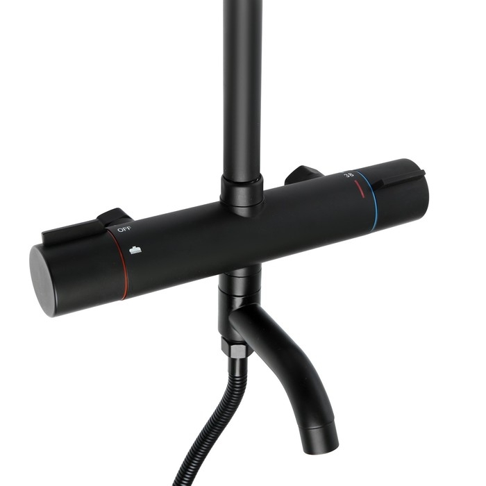 Душевая система ZEIN Z3895, с термостатом, лейка верхняя d=23 см, ручная 12,5 см, чёрная