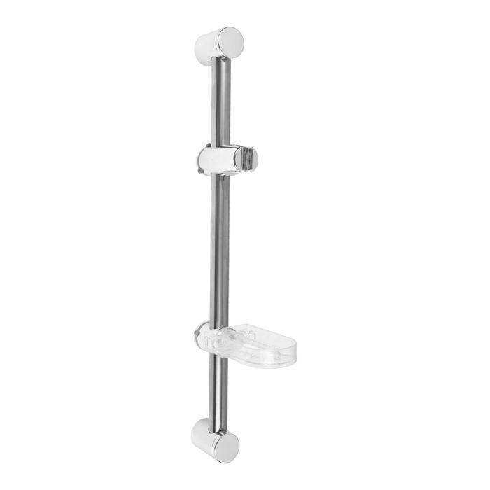 Это вертикальная штанга, на которой установлен кронштейн для ручного душа. Штанга стационарно крепится к стене над ванной при помощи специальных кронштейнов. Модель оснащена удобной пластиковой мыльницей.