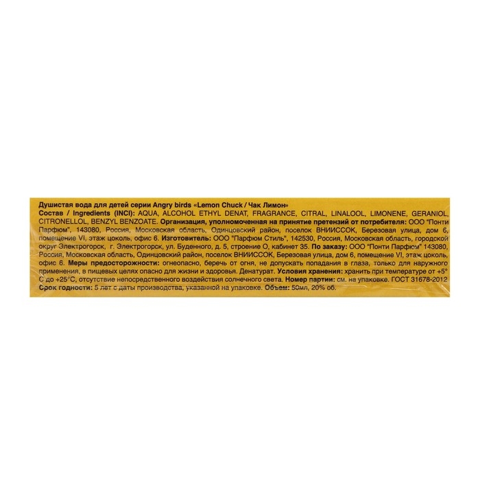 Душистая вода для детей Angry Birds Lemon Chuck, 50 мл