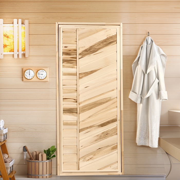 Дверной блок для бани, 170×70см, из липы, на клиньях, массив, "Добропаровъ"