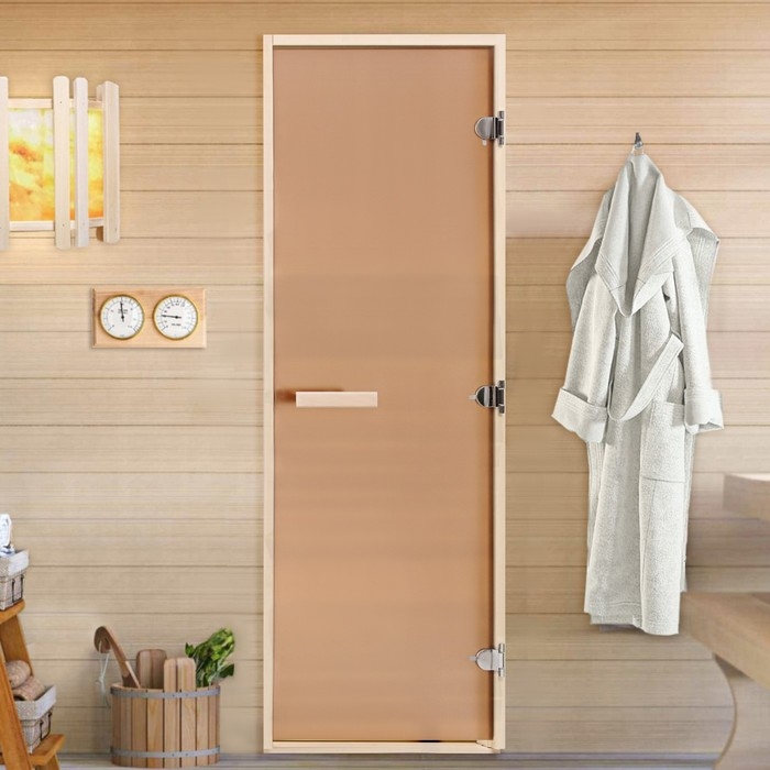 Дверь для бани и сауны "Бронза", размер коробки 170х80 см, матовая, липа, 8 мм