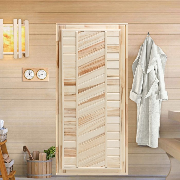 Дверной блок для бани, 170×80см, из сосны, на клиньях, массив, "Добропаровъ"