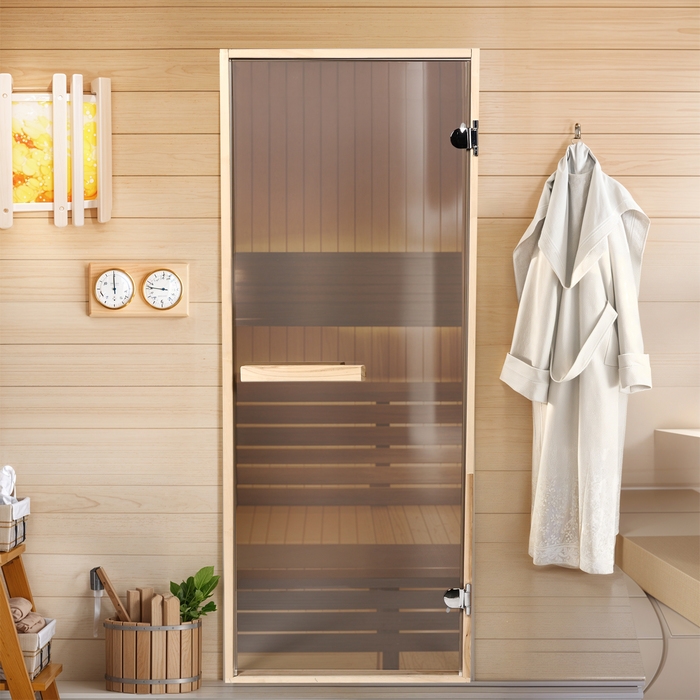 Дверь для бани и сауны стеклянная "Бронза", размер коробки 170х67, 6мм