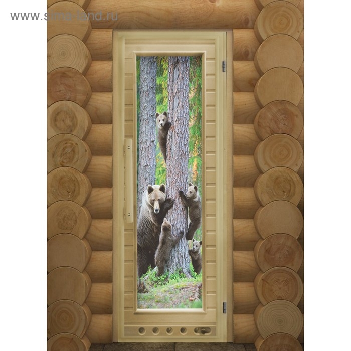 Дверь для бани со стеклом "Мишки. Элит", 190×80см, с вентиляцией, левое открывание