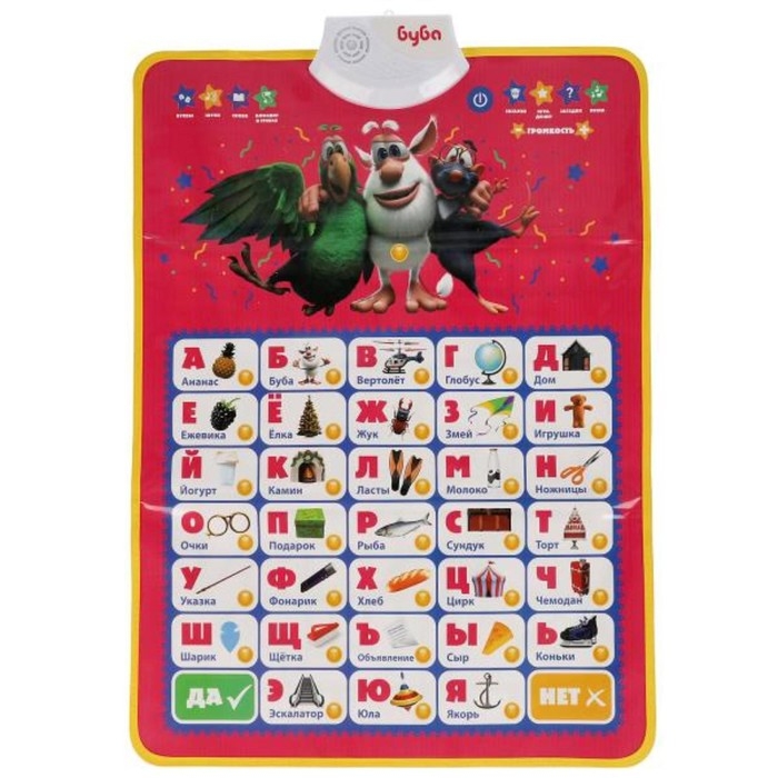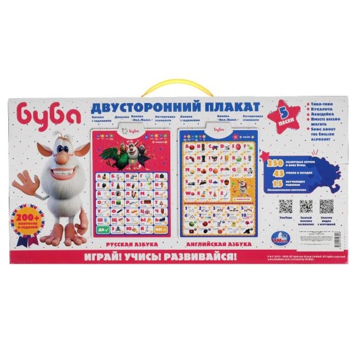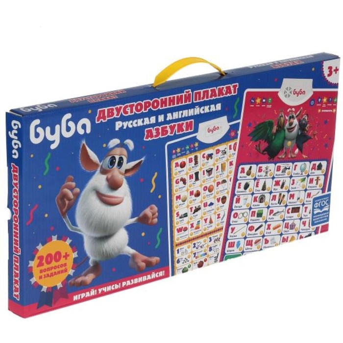 Двусторонний плакат «Буба» русская и англ. азбуки.200 вопросов, заданий