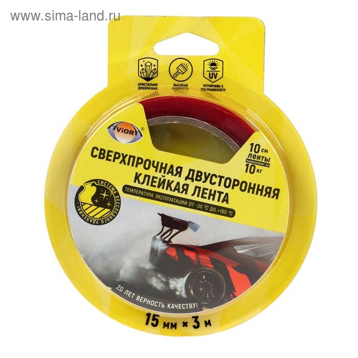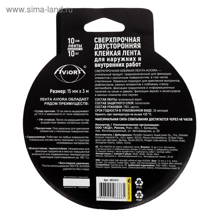 Двусторонняя сверхпрочная клейкая лента Aviora 15мм*3м на акрил.основе,УФ-стойкая