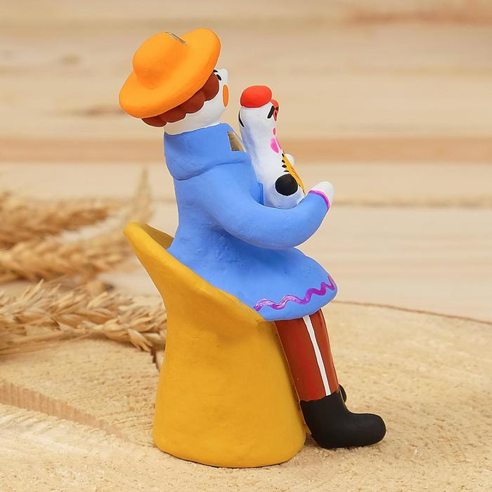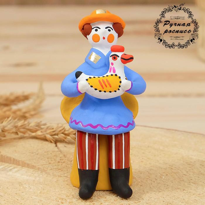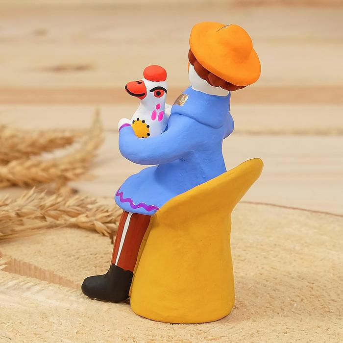 Дымковская игрушка "Мужик сидячий с петухом", 11 см, микс