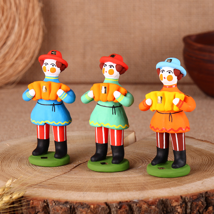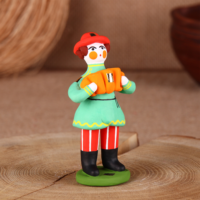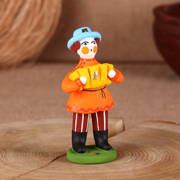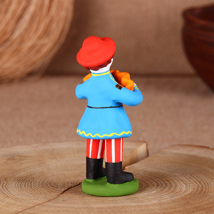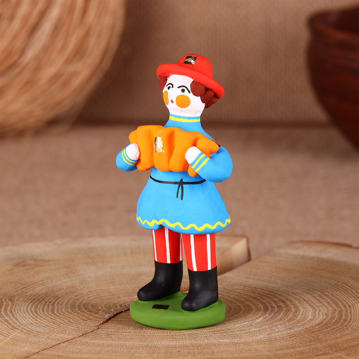 Дымковская игрушка "Мужик стоячий с гармошкой"