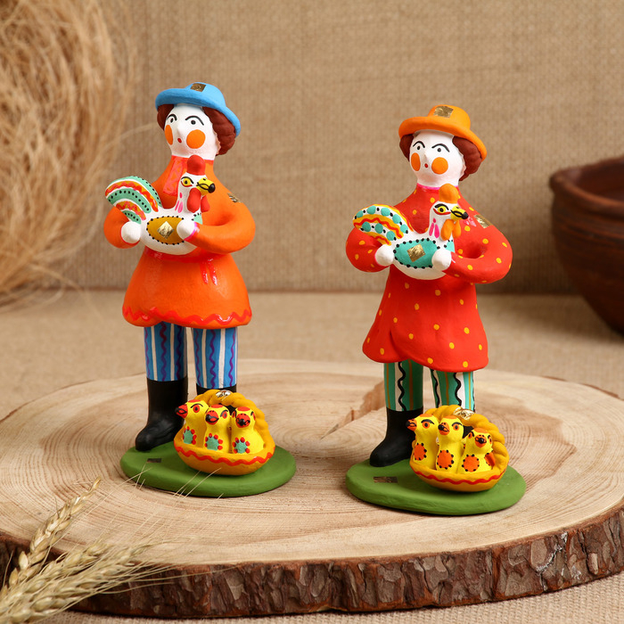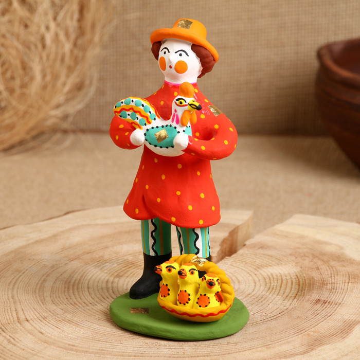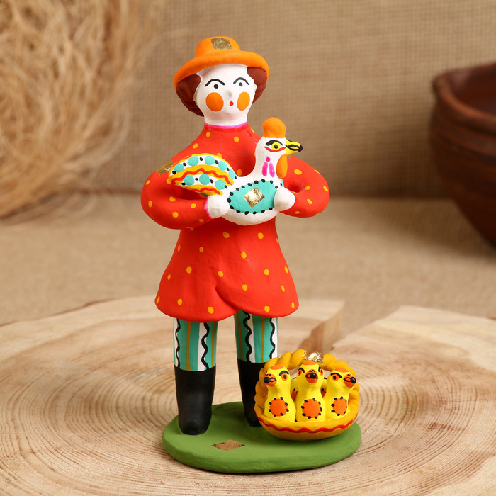 Дымковская игрушка "Мужик стоячий с курочкой"