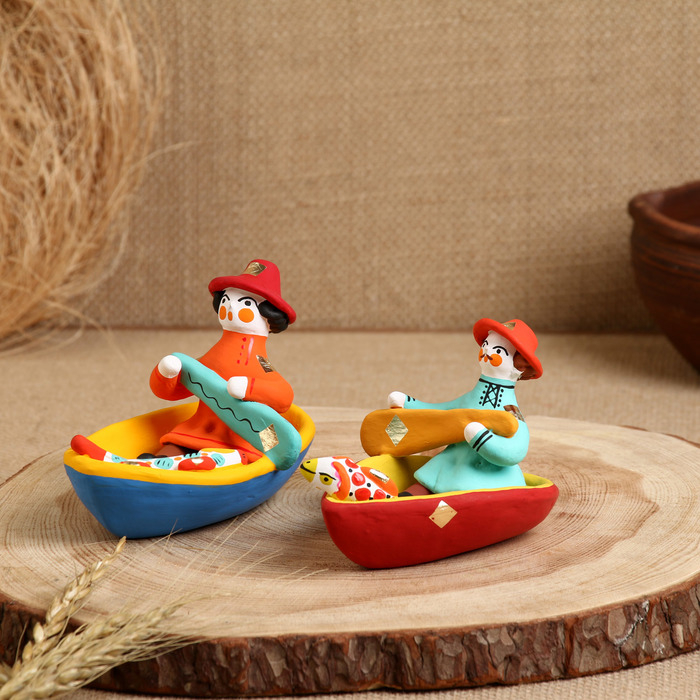 Дымковская игрушка "Мужик в лодке"