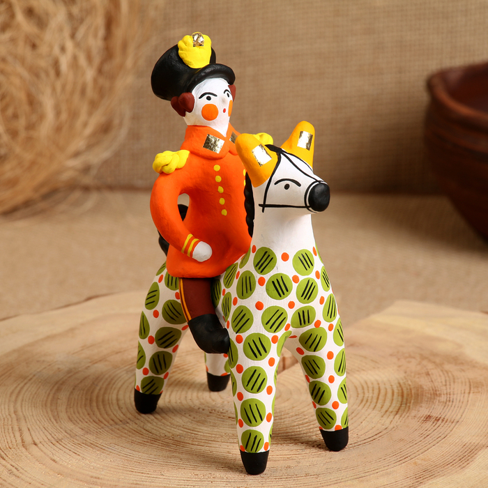 Дымковская игрушка "Всадник - офицер", 16 см, микс