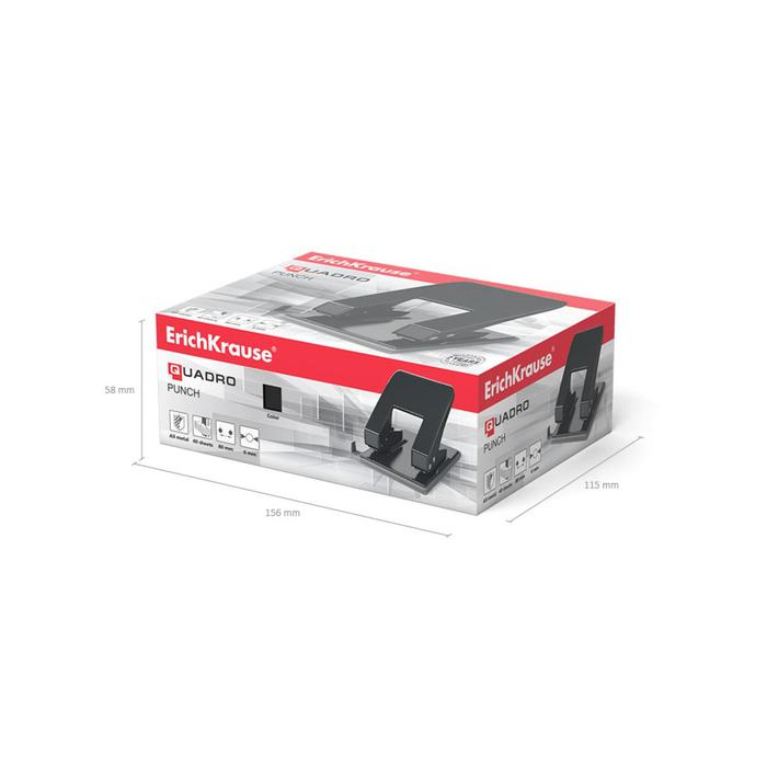 Дырокол до 40 листов ErichKrause Quadro, диаметр прокола 6мм, расстояние между проколами 80мм, микс