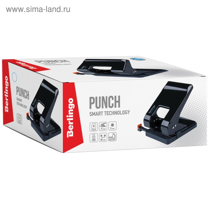 Дырокол до 45 листов Berlingo Smart Technology, энергосберегающий, с фиксатором, чёрный