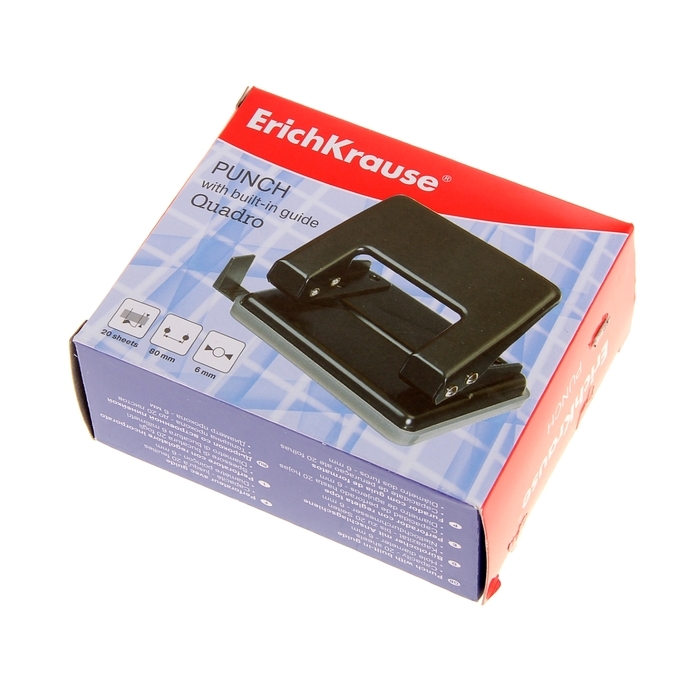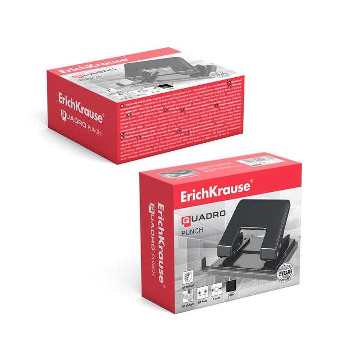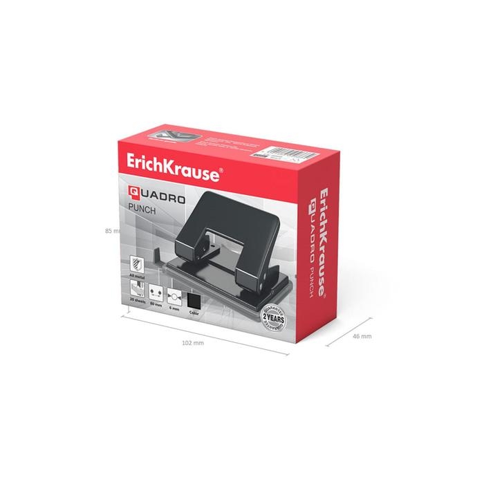 Дырокол ErichKrause Quadro, до 20 листов, диаметр прокола 6 мм, расстояние между проколами 80 мм, черный