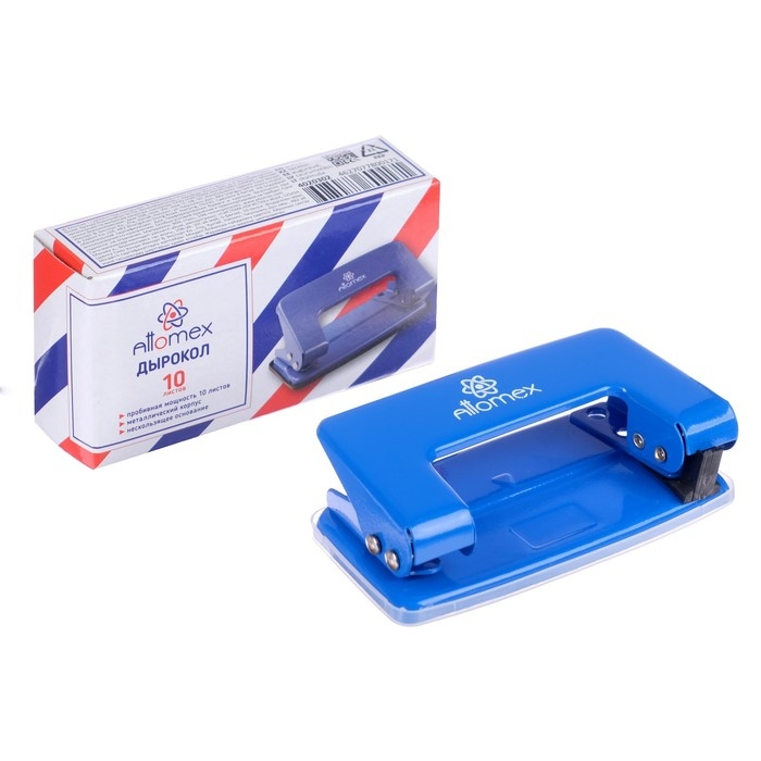 Дырокол Attomex (10 листовистов) металлический, в картонной коробке, синий