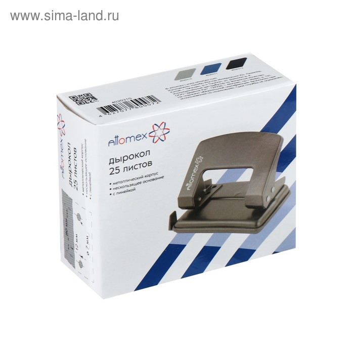 Дырокол "Attomex" (25 листов) металлический с линейкой, в картонной коробке, серый.