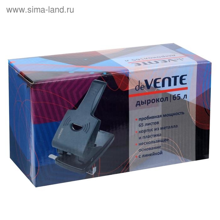 Дырокол большой мощности deVENTE. Stripe (65 листовистов) пластиковый усиленный корпус, с линейкой, в картонной коробке, черный