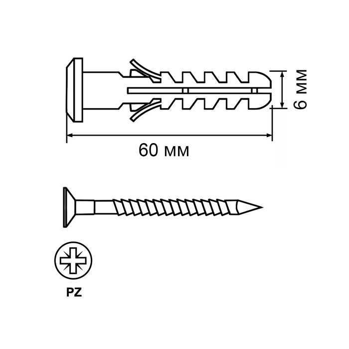 Дюбель-гвоздь "ТУНДРА krep", распорный, пластиковый, потайная манжета, 6x60 мм, 100 шт