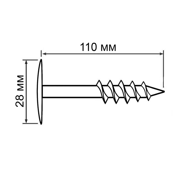Дюбель "ТУНДРА krep", для теплоизоляции, винтовой, 28x110 мм, 50 шт