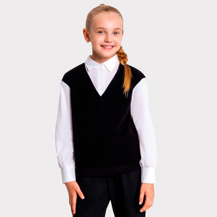 Джемпер для девочки школьный, цвет чёрный, рост 134 см
