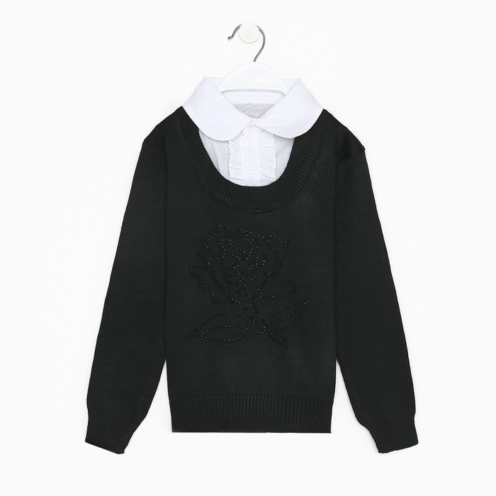 Джемпер-обманка для девочки, цвет чёрный, рост 128-134см