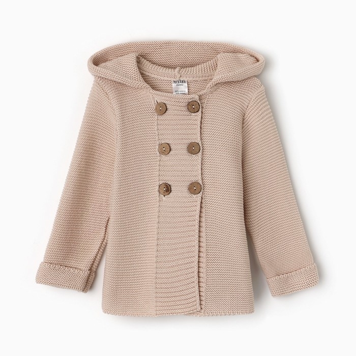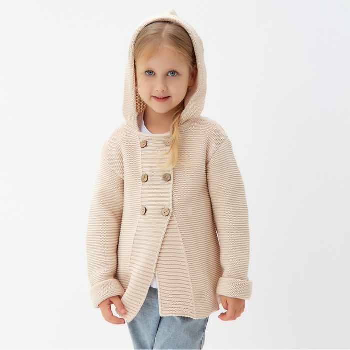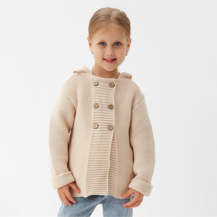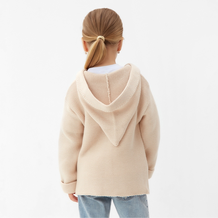 Джемпер вязаный детский с капюшоном MINAKU, цвет бежевый, рост 110 см