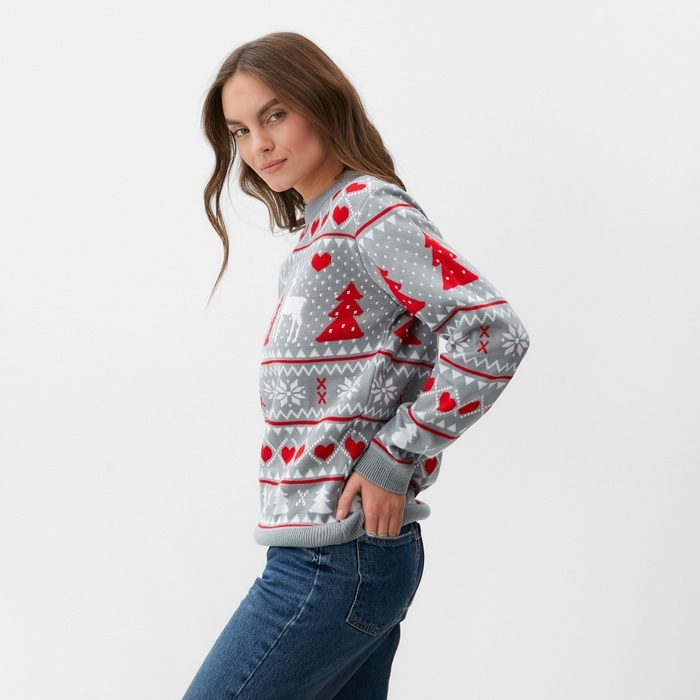 Джемпер вязаный KAFTAN "Новогодний" размер 50, серый