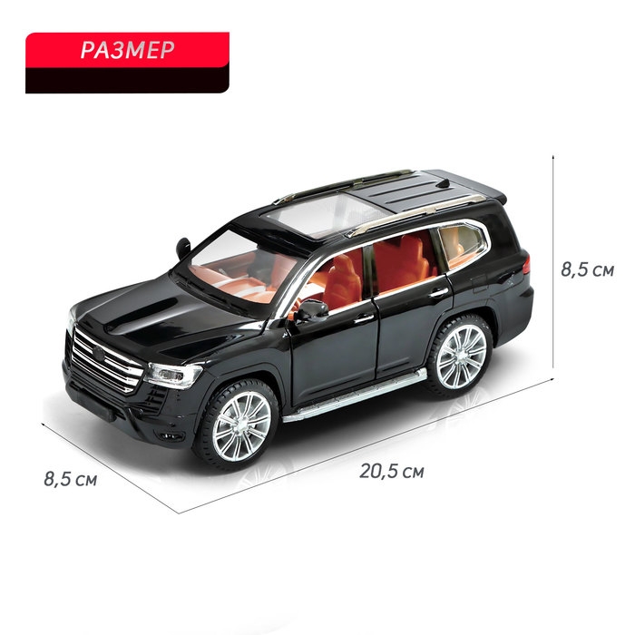 Джип металлический «Люкс», 1:24, открываются двери, капот, багажник, инерция, цвет черный