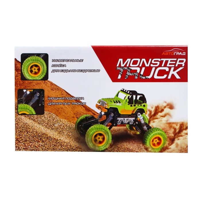 Радиоуправляемая машина-вездеход способна проехать там, где для легковых авто дороги нет! Большие колёса и высокая пружинная подвеска помогут преодолеть любые препятствия.