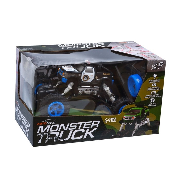 Джип радиоуправляемый MONSTER, 1:16, свет, работает от аккумулятора, цвет синий