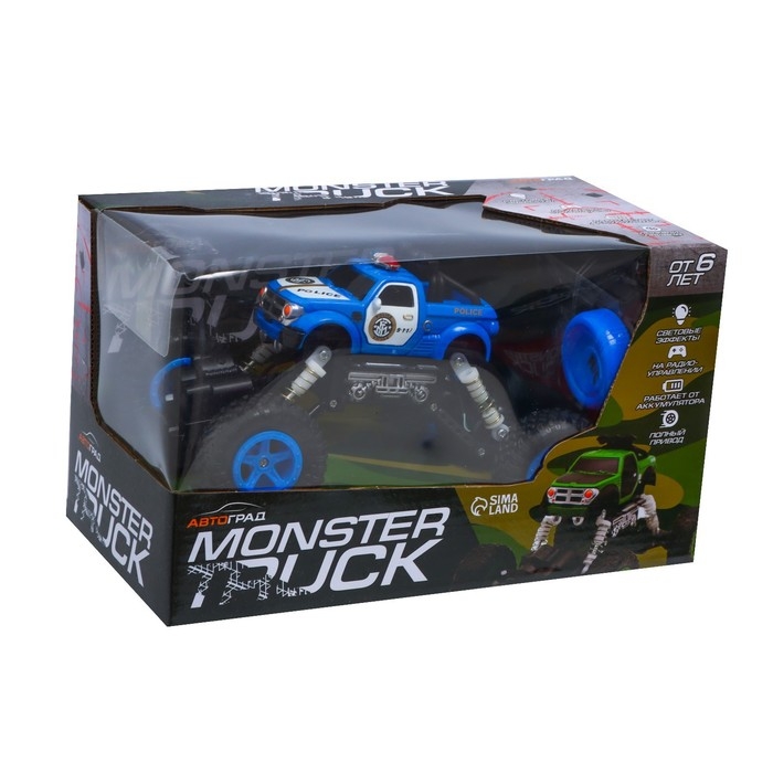 Джип радиоуправляемый MONSTER, 1:16, свет, работает от аккумулятора, цвет синий