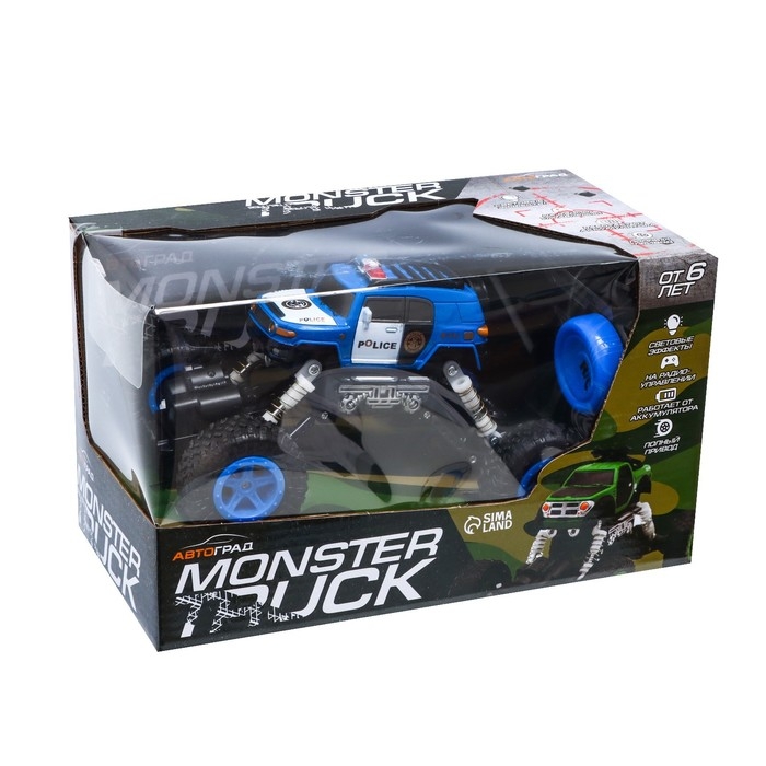 Джип радиоуправляемый MONSTER, 1:16, свет, работает от аккумулятора, цвет синий