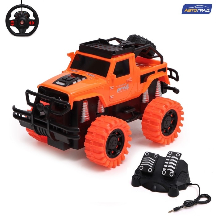 Джип радиоуправляемый Truck, педали и руль, работает от аккумулятора, цвет оранжевый