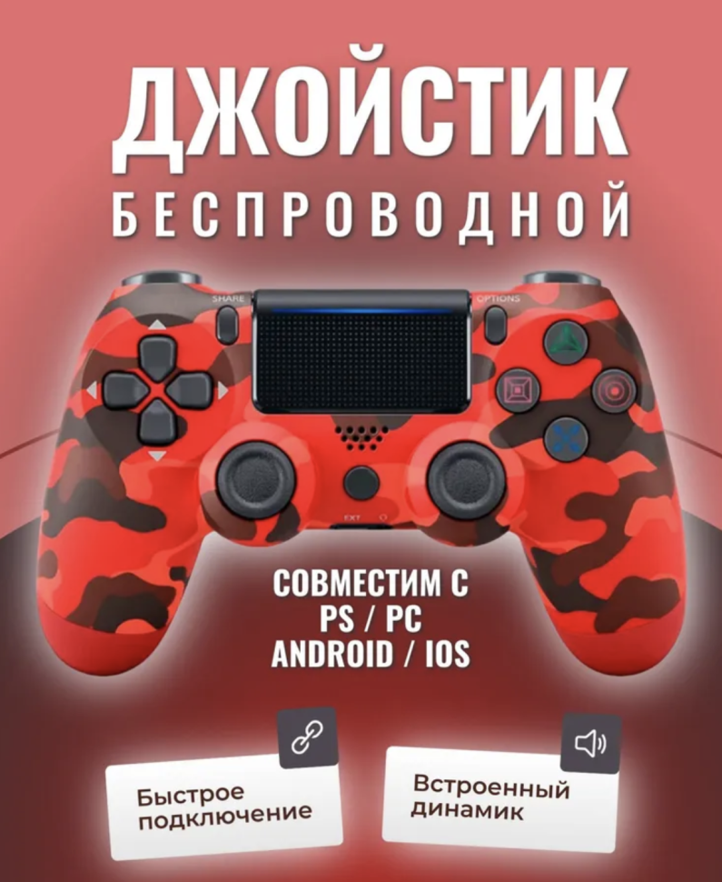Джойстик беспроводной для PS4 (no logo) Красный-хаки